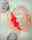 10 Red Work Bonnets in Fancy Dresses